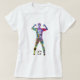 Colourful watercolor silhouette of a female soccer player printed on a t-shirt. The dynamic and artistic design captures the strength and movement of the sport, making it perfect for players and fans alike.