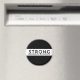 Minimalist feminist design featuring the word "Strong" with the letter 'o' in the shape of the female symbol.