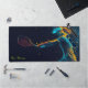 This desk mat features a vibrant illustration of a tennis player in action, showcasing athleticism and energy. the colorful design captures the motion of hitting a tennis ball, making it ideal as a gift for a female tennis player or female tennis enthusiast.