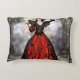 3D digital render of a beautiful female wizard in a red and black dress with wings on a fantasy spooky castle background