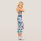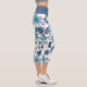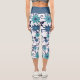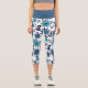Feminine Blue Turquoise Flower Pattern Capri Leggings