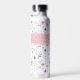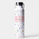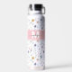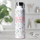 Personalised Elegant Wildflower Monogram Water Bottle. Add a soft, colourful touch to your daily routine with this elegant design featuring a delicate wildflower pattern in pastel shades of pink, purple, blue, yellow, and green on a white background. A pink bar stretches across with a white and grey monogram displayed on two sides for a graceful, personalised accent. All colours can be changed to match your style. Perfect for weddings, housewarmings, birthdays, or everyday use, this floral water bottle brings a fresh, timeless look to any setting.