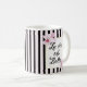 Feminine French Pink Blossoms and Black Stripes Coffee Mug