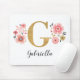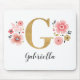 A beautiful, feminine monogrammed pink floral mouse pad, featuring pink flowers and a faux gold monogram letter G. Personalise the mouse pad by adding your name underneath the monogram. Makes a fun gift for a friend or for a bridesmaid gift. Designed for you by Blackberry Boulevard.