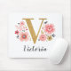 A beautiful, feminine monogrammed pink floral mouse pad, featuring pink flowers and a faux gold monogram letter V. Personalise the mouse pad by adding your name underneath the monogram. Makes a fun gift for a friend or for a bridesmaid gift. Designed for you by Blackberry Boulevard.