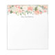 A band of lovely watercolor florals spans the top border of this feminine notepad design. Colours include peach, pink and off-white with mixed leaves and greenery scattered throughout. Insert your name or other desired text in place of the sample text shown if you wish to personalise this notepad. You can also delete the sample name if you prefer the item without text.
