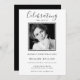 Feminine photo "Celebration Of Life" template. Replace the photo with one of your choice. Photo is encased with a black square and a jewel diamond silver frame, of which can be deleted if wanted. All text, font and font color is fully customizable to meet your requirements. If you would like help please contact me through my store and i will be very happy to help you. Modern funeral photo card to celebrate the life of a loved one. Sophisticated customizable invitation features a heartfelt photo of your choice, allowing you to create a personal and meaningful tribute. A fitting tribute to the unique and beautiful life that your loved one lived. Personalize with your private event details, add, change or remove text. Honoring the memory of your loved one by inviting friend's and family to join the "celebrating the life of" with this Photo Funeral Memorial Invitation.