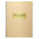 Beautifully feminine, this custom spiral notebook features a pink and gold chevron stripes pattern with matching gold inset frame. Enter your name, title or other text in place of the sample text shown to personalise.