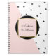 Feminine Pink Personalised Colour Block Polka Dots Notebook