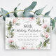Celebrate an 80th birthday in beautiful feminine style with this stylish pink floral birthday party invitation. Your event text is surrounded by a floral watercolor wreath of pink roses and wispy greenery. All of the text can be personalized with your custom party text, including the age. You can also use this invitation template for other ages by personalizing the number 80 to your desired age number.