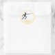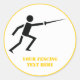 Fencer black silhouette fencing custom sticker featuring a minimalist pictogram icon of a black silhouette of a fencer holding his sword and your text on white background with yellow border. See lots of designs at our Sports Gifts store.