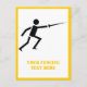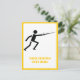 Fencer black silhouette fencing custom vertical postcard design featudisplaying a minimalist pictogram icon of a black silhouette of a fencer holding his sword and your text on white background with yellow border. This cool, modern design is a template and it is completely customisable. Personalise it and change text with monogram, name or your message. The perfect gift for the fencing athlete or lover in your life. See lots of designs at our Sports Gifts store.