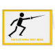 Fencer black silhouette fencing custom greeting card that displays a minimalist pictogram icon of a black silhouette of a fencer holding his sword and your text on white background with yellow border. This cool, modern design is a template and it is completely customisable.