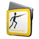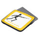 Fencer black silhouette fencing laptop sleeve that displays a minimalist pictogram icon of a black silhouette of a fencer holding his sword and your text on white background with yellow border. This cool, modern design is a template and it is completely customisable.