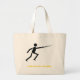 Fencer black silhouette fencing large tote bag design featuring a minimalist pictogram icon of a black silhouette of a fencer holding his sword and your text on white background. Personalise it and change text with monogram, name or your message.