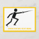 Fencer black silhouette fencing horizontal postcard featuring a minimalist pictogram icon of a black silhouette of a fencer holding his sword and your text on white background with yellow border. The perfect gift for the fencing athlete or lover in your life. See lots of designs at our Sports Gifts store.