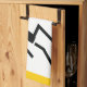 Fencer black silhouette fencing kitchen towel displaying a minimalist pictogram icon of a black silhouette of a fencer holding his sword and your text on white background with yellow border. This cool, modern design is a template and it is completely customisable. See lots of designs at our Sports Gifts store.