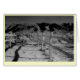 Black and white infrared photograph of fences and mountains in Joshua Tree National Park.