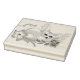 A cute fennec fox curled up with flowers in a backdrop of blue