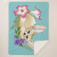 A cute fennec fox curled up with flowers in a backdrop fo blue