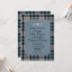 Stylish Scottish highland wedding invitation done in the traditional blue, grey, maroon and black clan Ferguson tartan plaid pattern. A blue felt looking text area has graphics of a silver tone flower, at the top. Personalise all the text to suit your wedding needs. Matching products are available.
