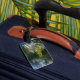 I was happy with the acrylic tag but it came with a thin leather strap to attach the tag to luggage (like a cat collar). I replaced the strap with a metal ring off of a key ring as the leather strap would come undone or break easily as luggage is sometimes handled without much care by airlines. Printing is great. Colours and positioning of the design I put on the tag were perfect. Very pleased.