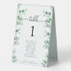 These table numbers feature a watercolour foliage design with a hand-lettered script font. The script heading is an image that cannot be edited. All of the other text is fully editable. For more advanced customisation of this design, simply select the "Customise It" button above.