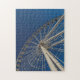 A challenging jigsaw puzzle featuring a photo of la Grande Roue de Montreal, with the white ferris wheel against a brilliant blue sky. A black and white version is also available.