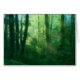 Rays of the morning sun streaming into a brilliantly green summer forest, with massive ivy-covered trees and a thick blanket of underbrush. A photograph digitally manipulated to give the over-grown vines, blue-green mist, golden god-rays, and spring green tree leaves a dream-like quality.