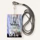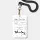 A unique wedding invitation on a lanyard.