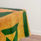Years ago I got a matching runner from elsewhere and was so thrilled to find this same pattern offered as a tablecloth. The material is very high quality and it is well-constructed. Also it got here just in time for my party tomorrow! Would buy from this seller again. Colors are very sharp. It’s perfect. Well done