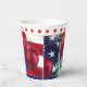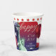 Festive paper cups featuring a USA flag with statue of liberty and stars and stripes. Beautiful for a 4th of July celebration.