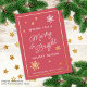 This Christmas greeting card is a perfect way to send seasonal greetings and holiday wishes to your family and friends. The card has a vintage ddark pink red coloured background that creates a soothing and elegant contrast with the festive gold stars and snowflakes that decorate it. The card has a simple and classic design that is also trendy and eye-catching. The card has a space on the front where you can customise or personalise it with your family name or individual names, making it more special and unique. There also is enough space on the inside where you will notice an already written text that you can leave as is, or can change into your own season greeting instead.