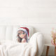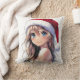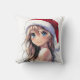Festive Anime Girl Santa Hat with Bright Blue Eyes Cushion