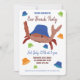 Throw an epic beach party or an ocean-themed birthday party with these fun invitations that feature an illustration of a cartoon crab dressed in a blue bucket style beach hat as well as colourful beach hat accents. Use the template fields to easily fill in all of your party details. This fun design works both for kids or adult parties.
