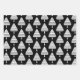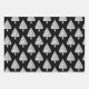 Festive black and white Christmas tree pattern wrapping paper sheets, perfect for holiday gift wrapping.