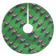 Festive Black Cat Pattern on Green Brushed Polyester Tree Skirt