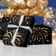 Festive Black Gold Stars Fireworks Pattern Elegant Chic Gift Wrapping Paper