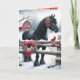 Festive Black Horse and Cardinal Christmas Holiday Card