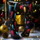 Festive Black Socks with Colourful Galaxy Accents
