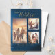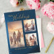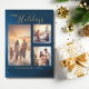 Festive Blue 3 Photo Collage Modern Christmas Holiday Card