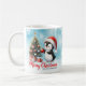 Festive Blue and Red Fun Penguin Merry Christmas Coffee Mug