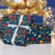A rich holiday pattern of Christmas ornaments and winter foliage on deep navy blue, with pops of red berries and warm golden accents. Crisp, high-detail illustration creates a modern yet cosy seasonal vibe—perfect for elegant Christmas gifts, winter birthdays, and December celebrations.