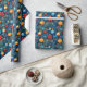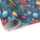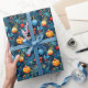 Festive Blue Christmas Ornaments & Foliage Pattern Wrapping Paper