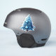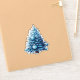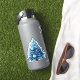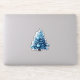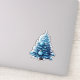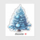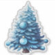 A vibrant blue Christmas tree stands tall, decorated with shiny blue ornaments and delicate golden accents.