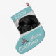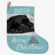 Festive Blue Dog Pet Name and Photo Large Christmas Stocking