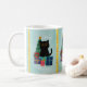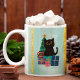 Festive Blue Merry Christmas Cute Black Cat Coffee Mug