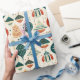 Festive Blue Red Ornaments Geometric Mid Century Wrapping Paper