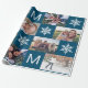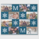 Festive white snowflakes on a blue background Christmas holiday wrapping paper with photo collage and monogram.