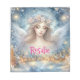 Festive blue watercolor ethereal frost snow angel. Your custom name is written in a pink hand lettered script.